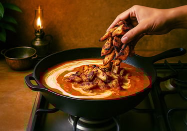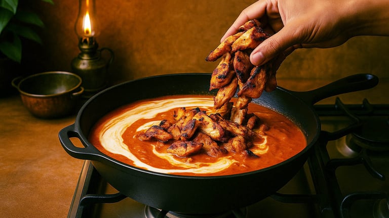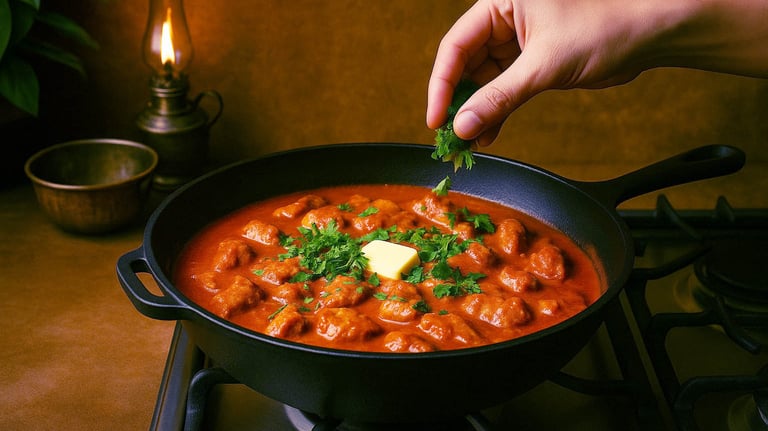 Zartes Hähnchen, aromatische Gewürze und eine cremige Tomaten-Butter-Sauce – verfeinert im Ofen.