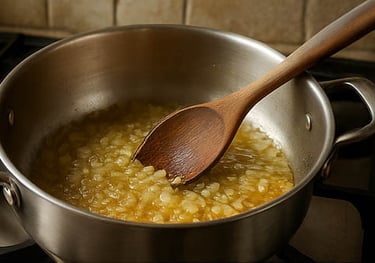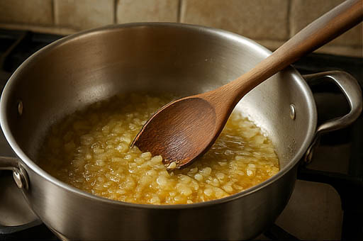 Zwiebel darin bei mittlerer Hitze glasig braten (ca. 5–7 Min.).