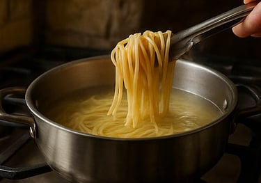 Vor dem Abgießen eine Tasse Pastawasser aufbewahren.