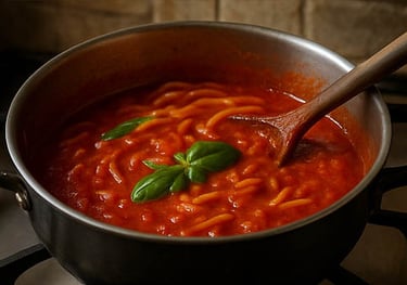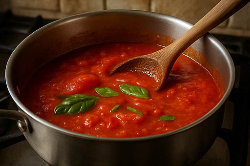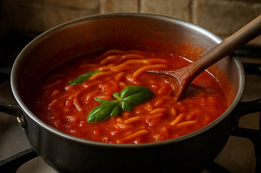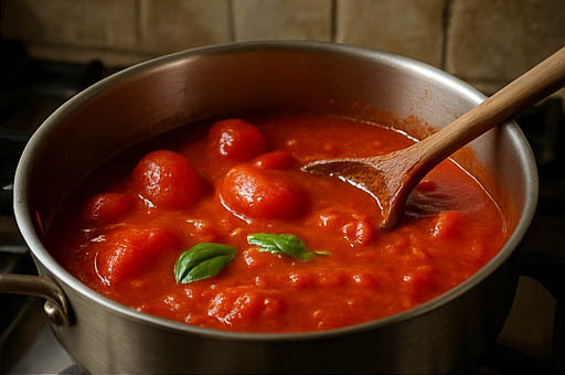 20–30 Minuten sanft köcheln lassen, damit die Sauce eindickt.