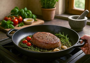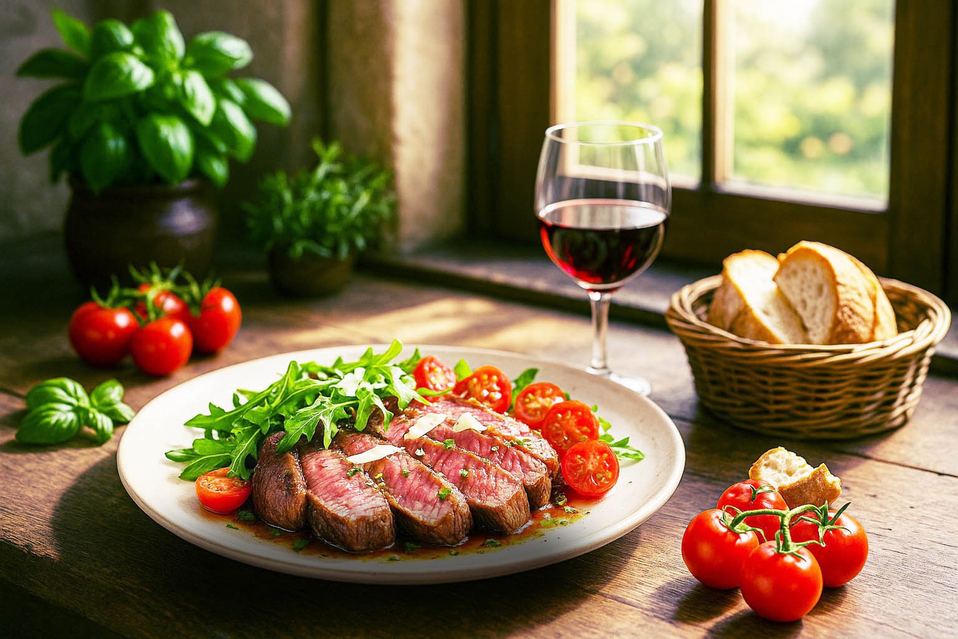 Sanft gebraten und in feine Scheiben geschnitten, bringt dieses Steak einen Hauch italienischer Einfachheit und Eleganz auf den Teller.