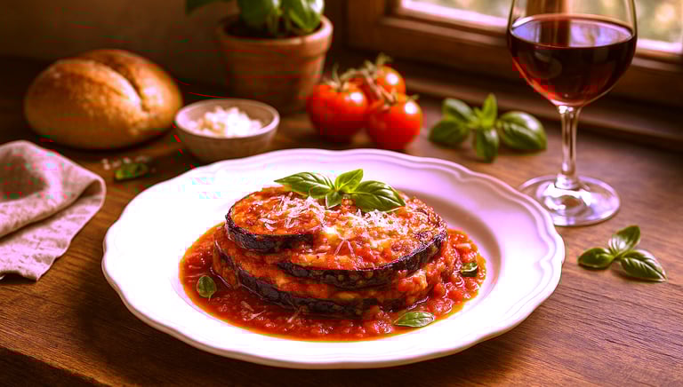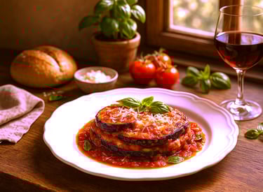 Ein süditalienischer Klassiker: geschichtete Auberginen, würzige Tomatensauce, geschmolzener Käse – herzhaft, duftend und mit jeder Lage ein Stück italienischer Seele.